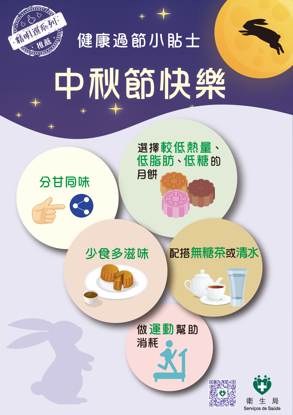推廣慢性病防控及健康促進資訊 由academic affairs發表於2025年 09月 30日(Tue) 16:26 Number of replies: 0 各位師生:本院現附上本期推廣有關中秋過節小貼士、含糖飲料及手搖飲品等資訊圖文包供各師生查看: 圖文包(共5張): 1. 中秋過節小貼士1-3_中文3張 2. 含糖飲料比一比 _中文1張 3. 手搖飲品少D飲_中文_1張 永久鏈接